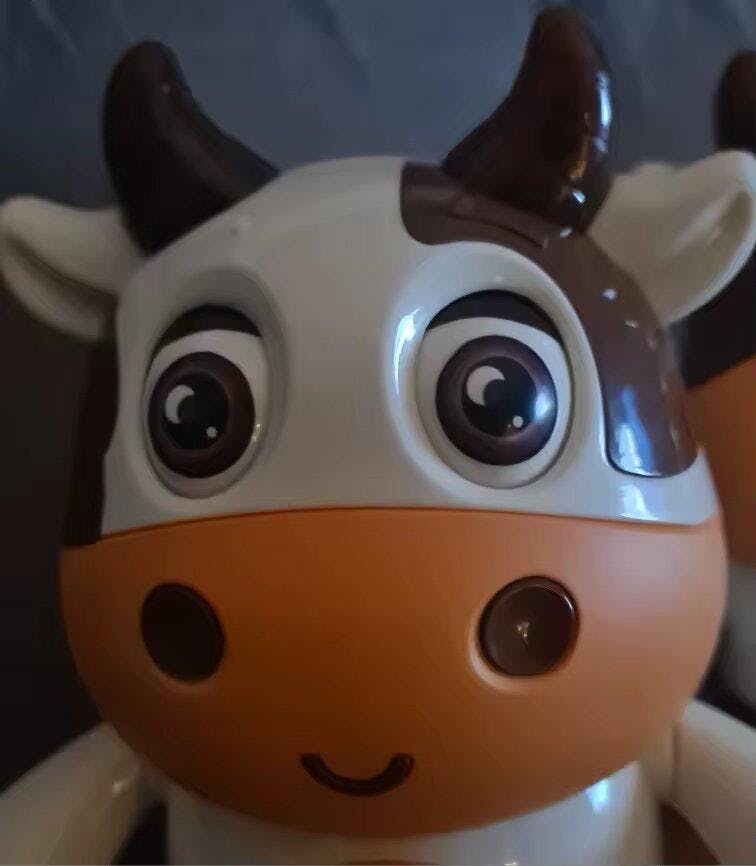 Notaron que sus hijos se movieron más y pasaron menos tiempo con el celular, gracias a las luces, música y movimientos divertidos de la vaca. 🎶📵💃